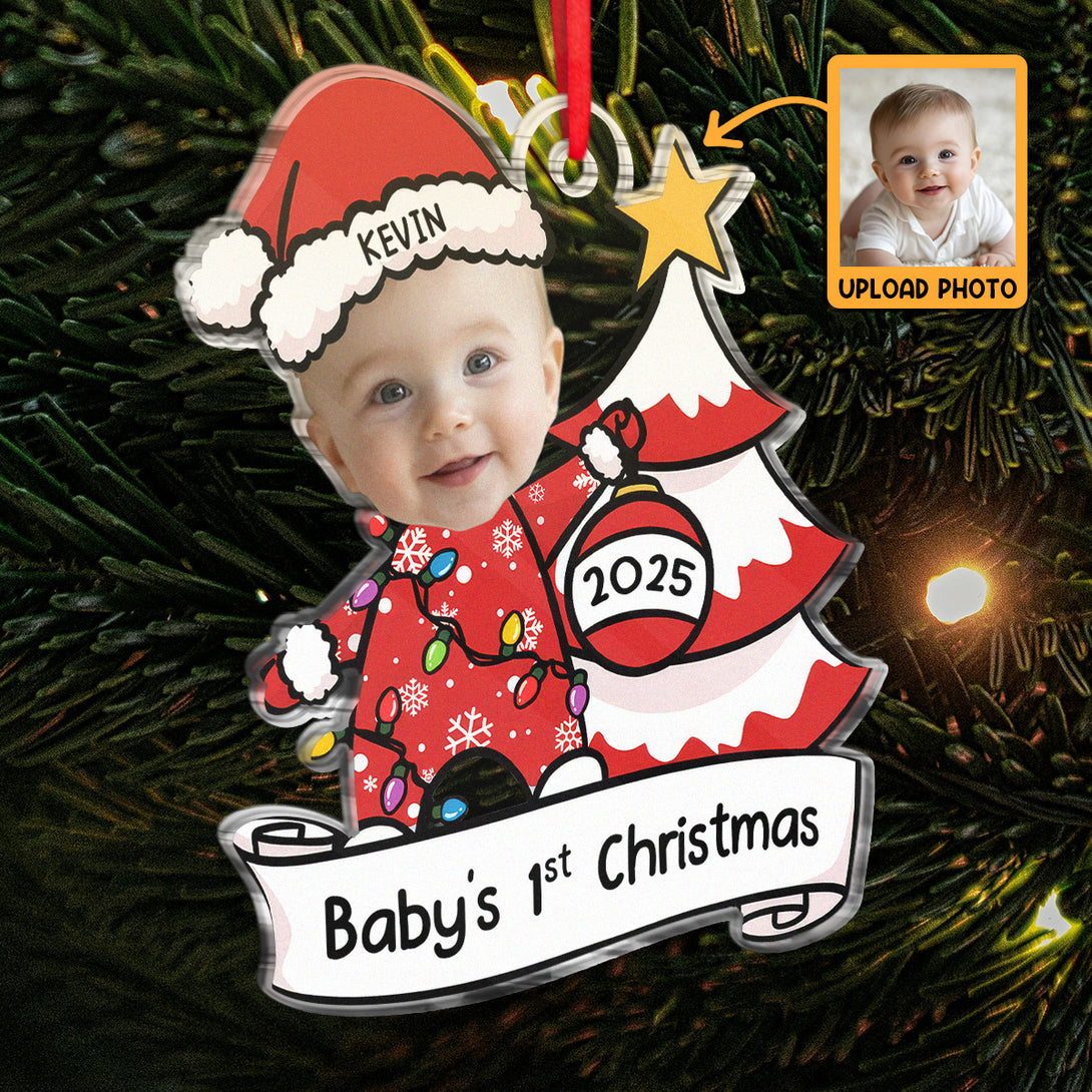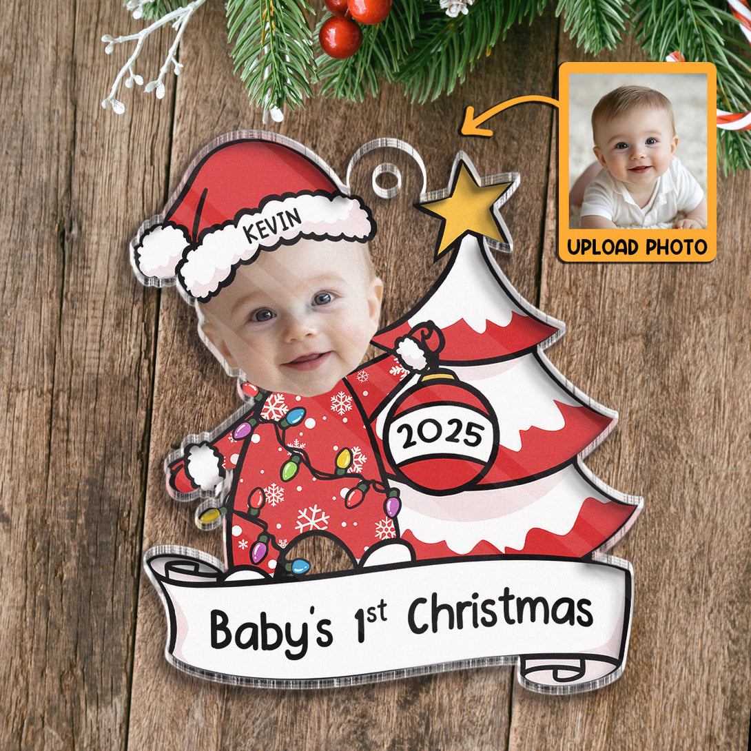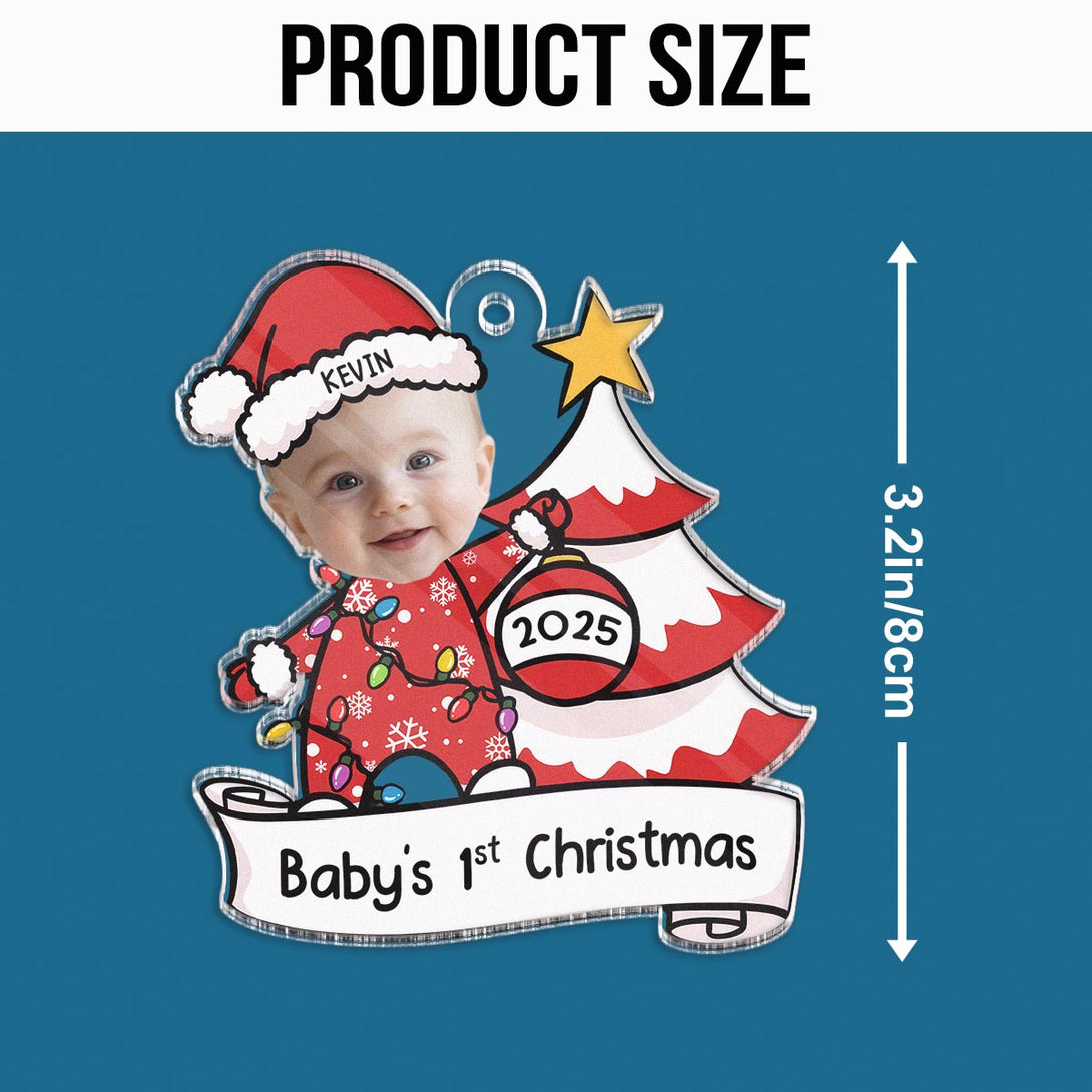 Custom Baby Photo Santa First Christmas - Personalized Acrylic Ornament - Christmas Gift For Family Members, Kids, Newborn