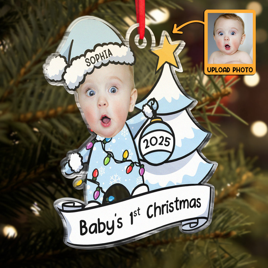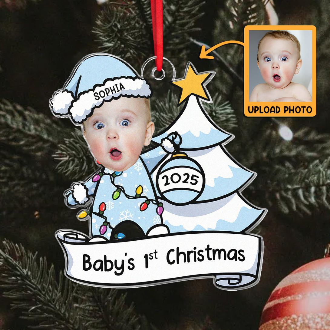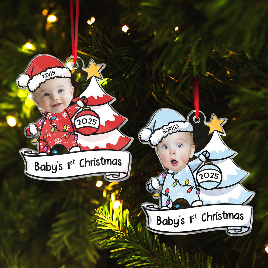 Custom Baby Photo Santa First Christmas - Personalized Acrylic Ornament - Christmas Gift For Family Members, Kids, Newborn
