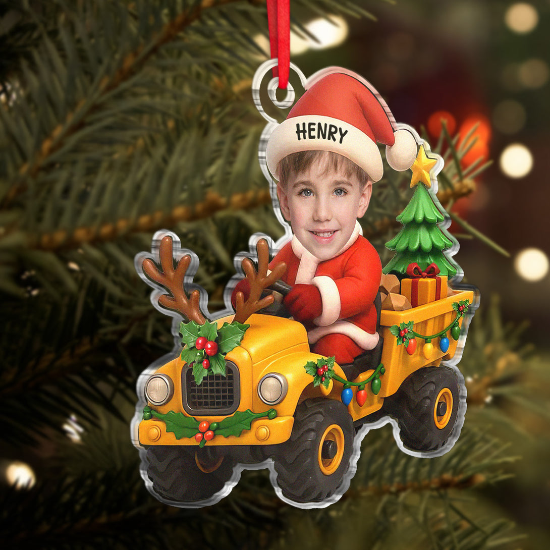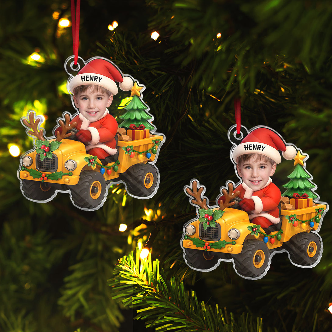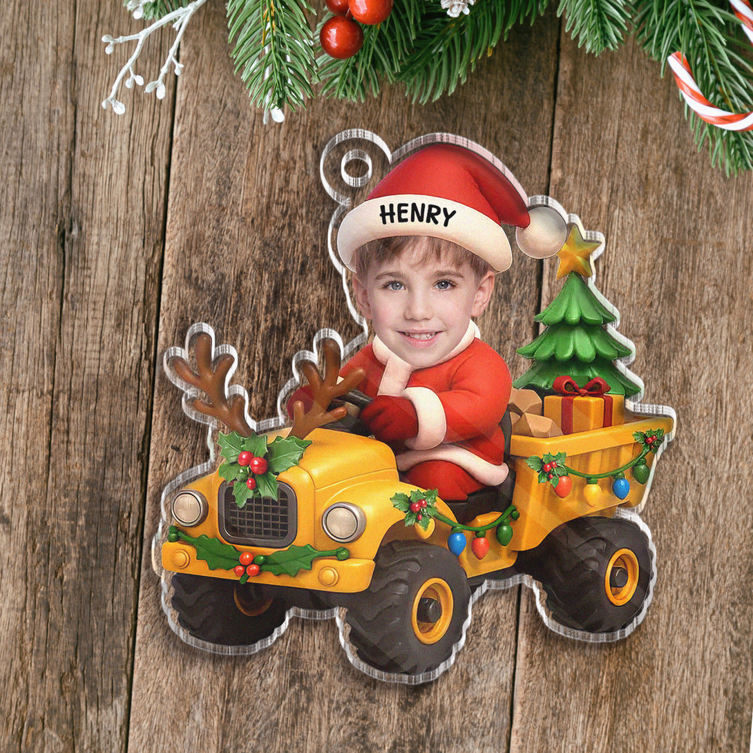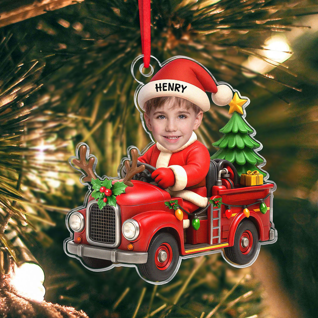 Custom Baby Photo Santa With Toy Truck - Personalized Acrylic Ornament - Christmas Gift For Family Members, Kids, Newborn