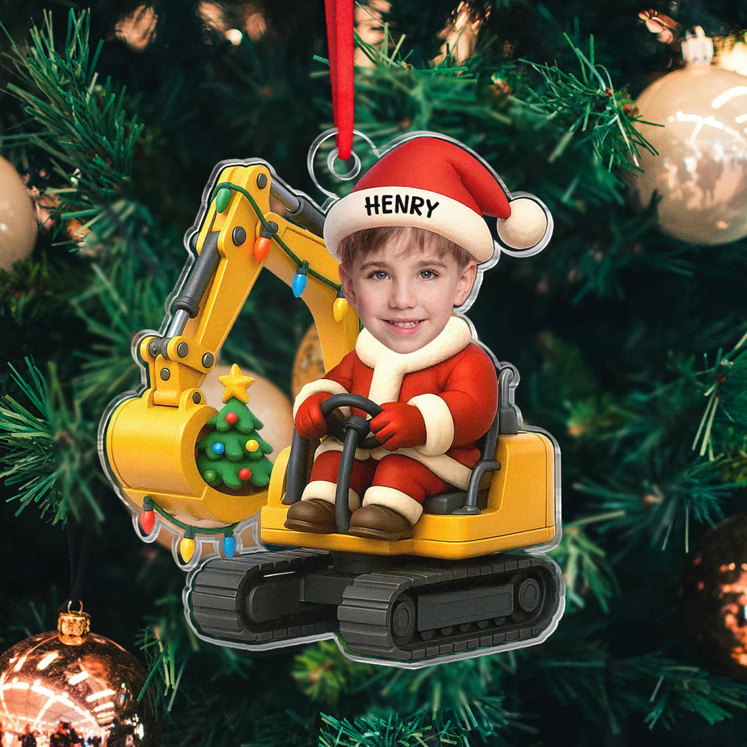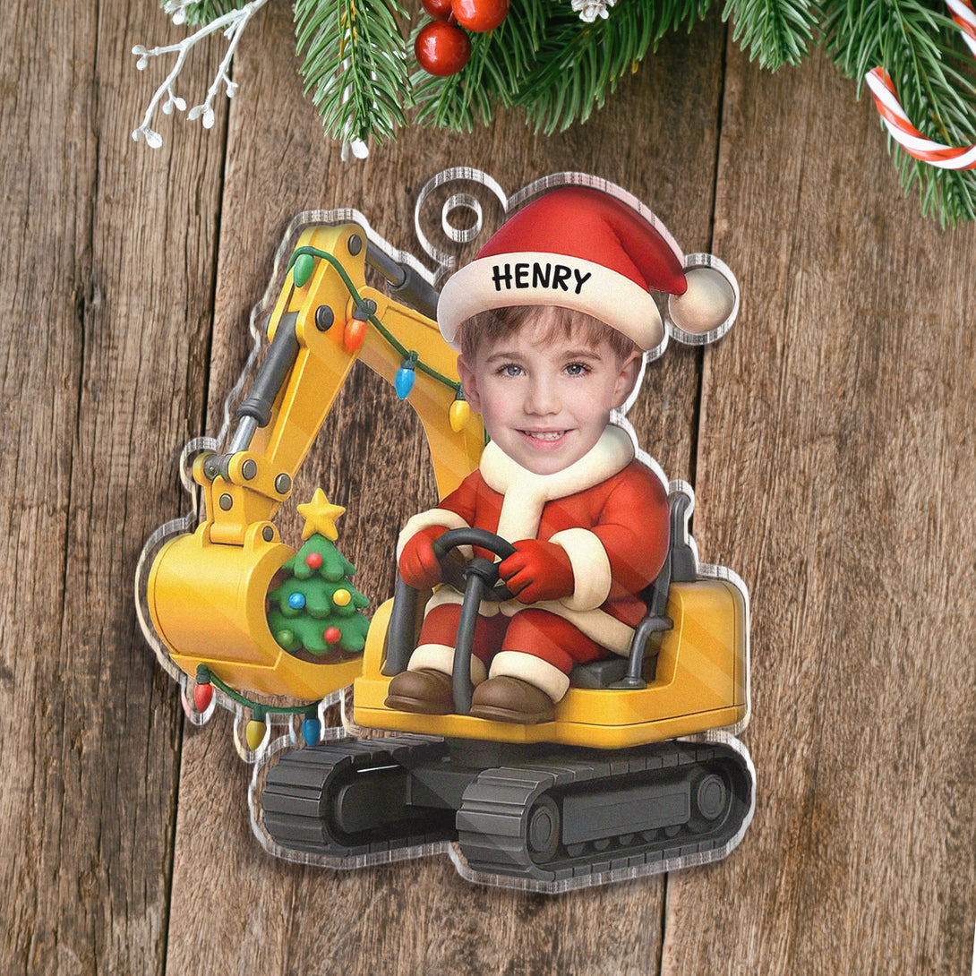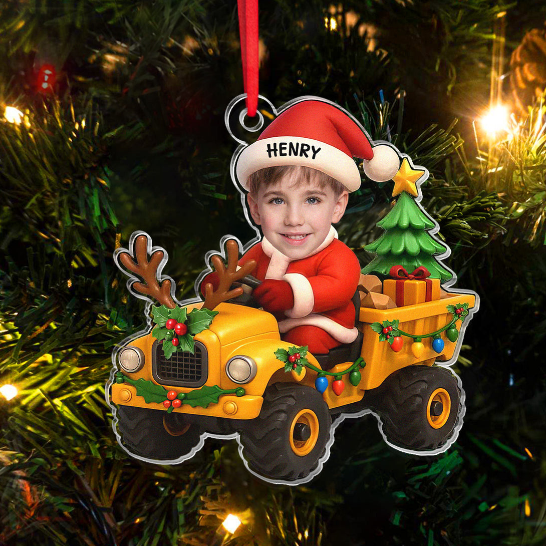 Custom Baby Photo Santa With Toy Truck - Personalized Acrylic Ornament - Christmas Gift For Family Members, Kids, Newborn
