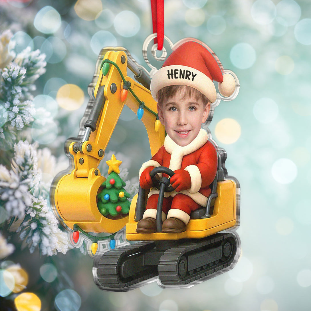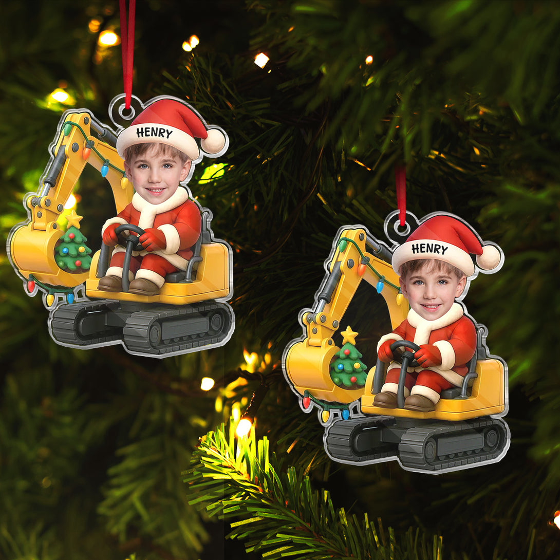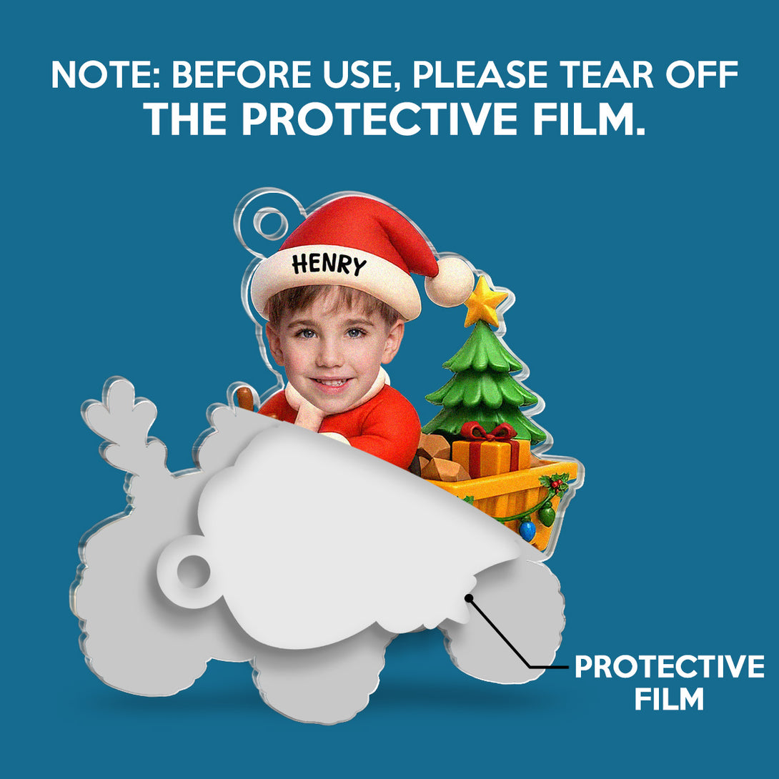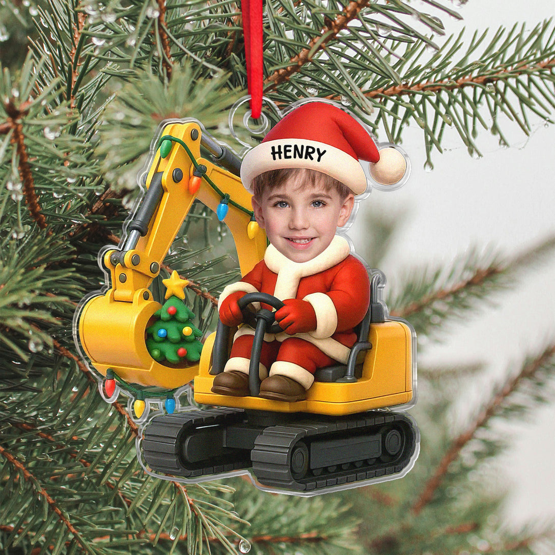 Custom Baby Photo Santa With Toy Truck - Personalized Acrylic Ornament - Christmas Gift For Family Members, Kids, Newborn