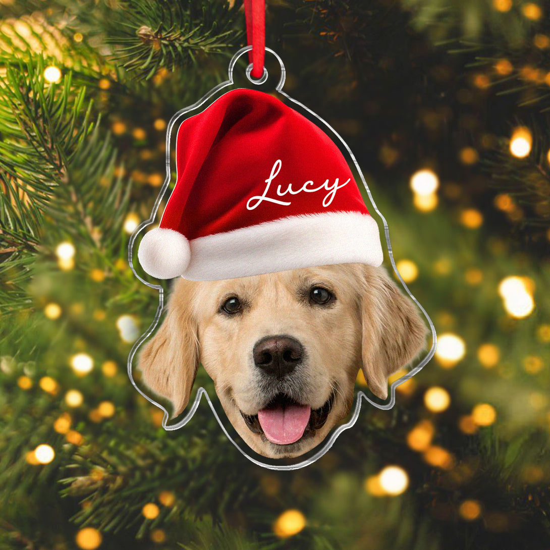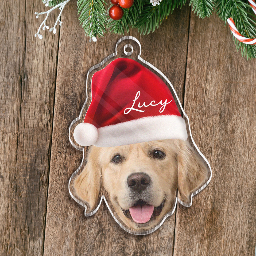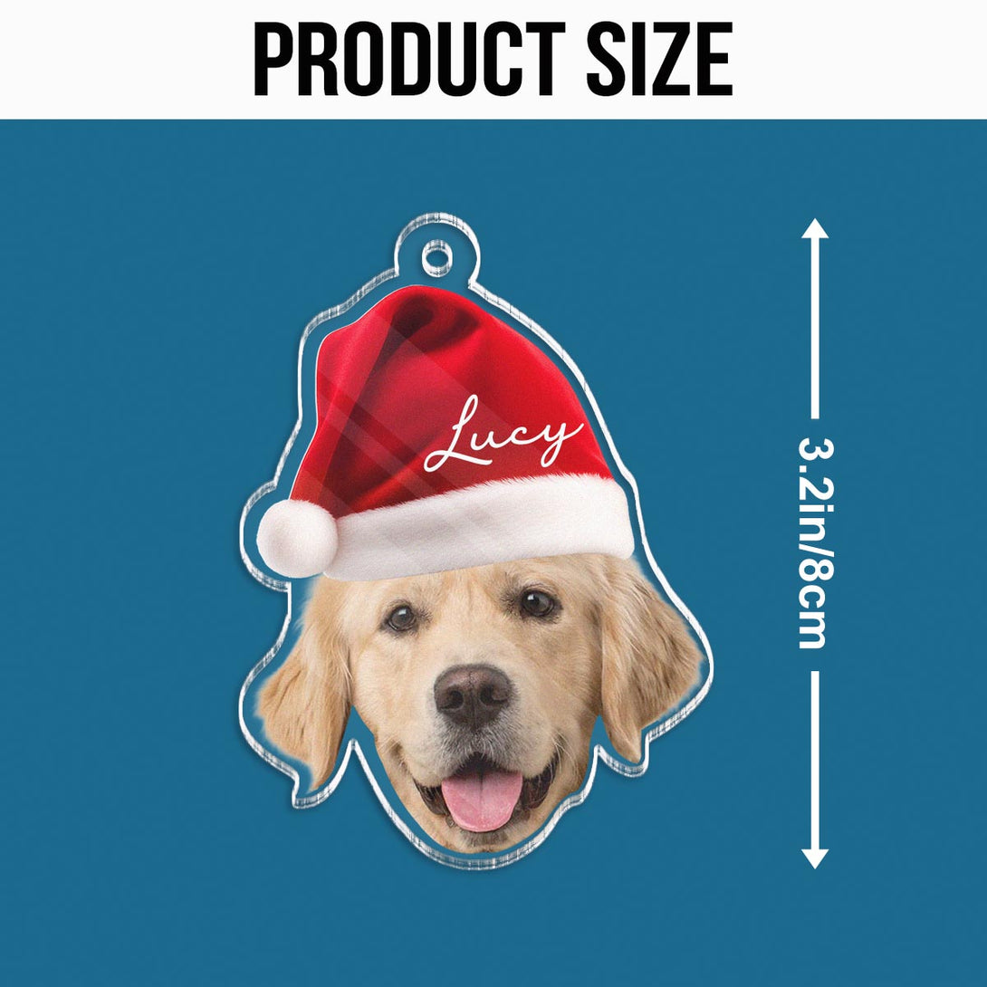 Custom Pet Photo With Christmas Hat - Personalized Acrylic Ornament - Christmas Gift For Pet Lover, Dog Lover, Cat Lover