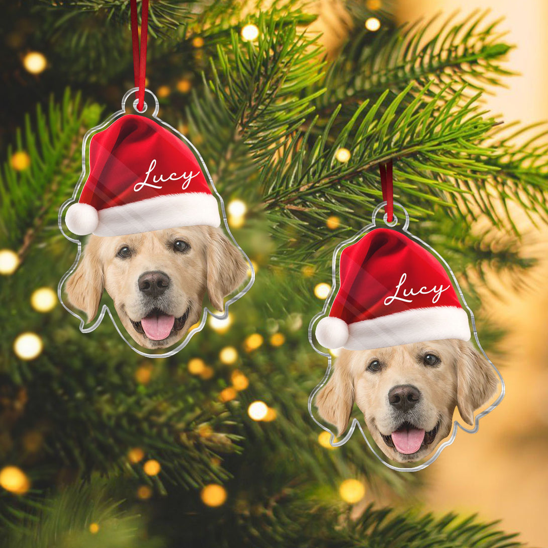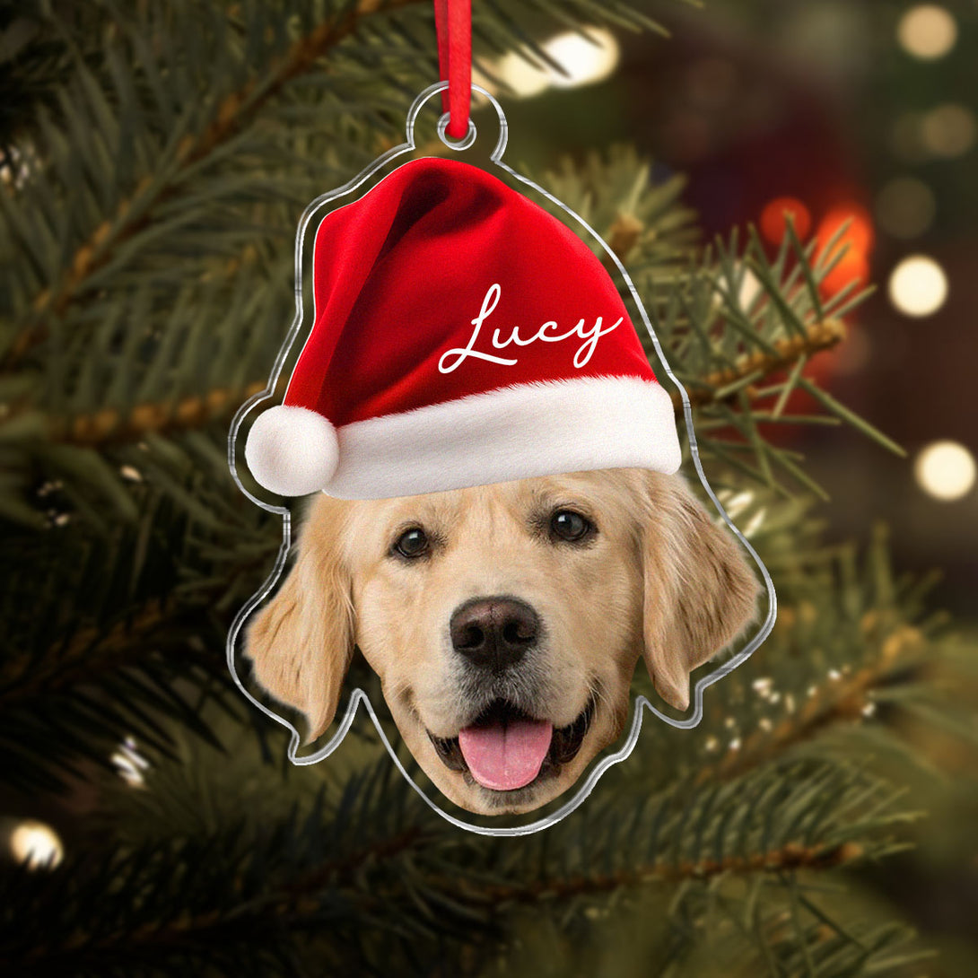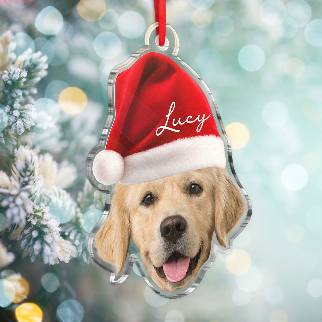Custom Pet Photo With Christmas Hat - Personalized Acrylic Ornament - Christmas Gift For Pet Lover, Dog Lover, Cat Lover