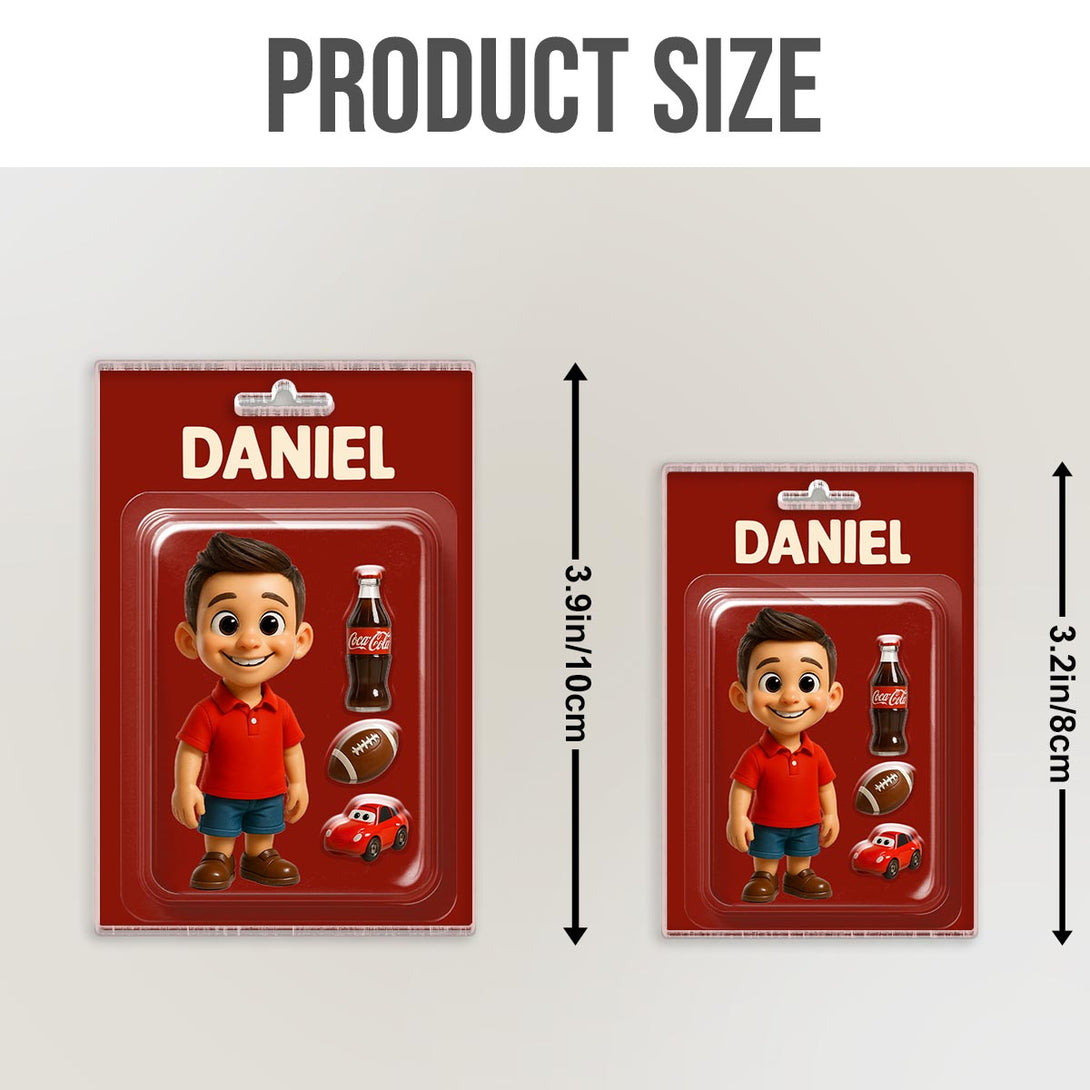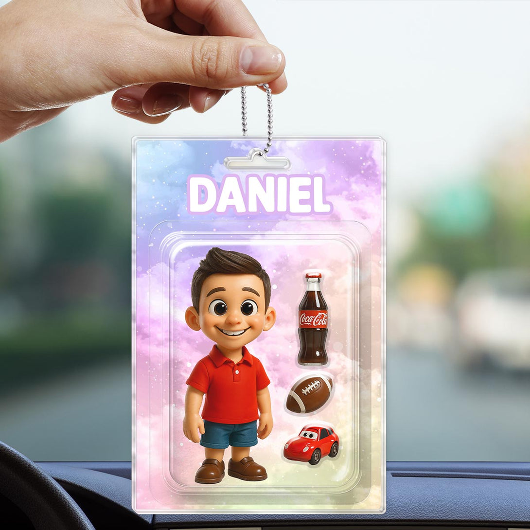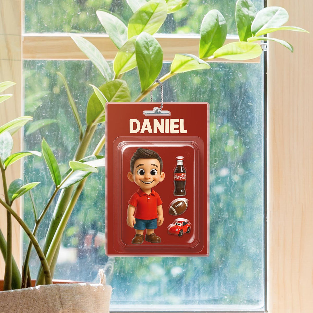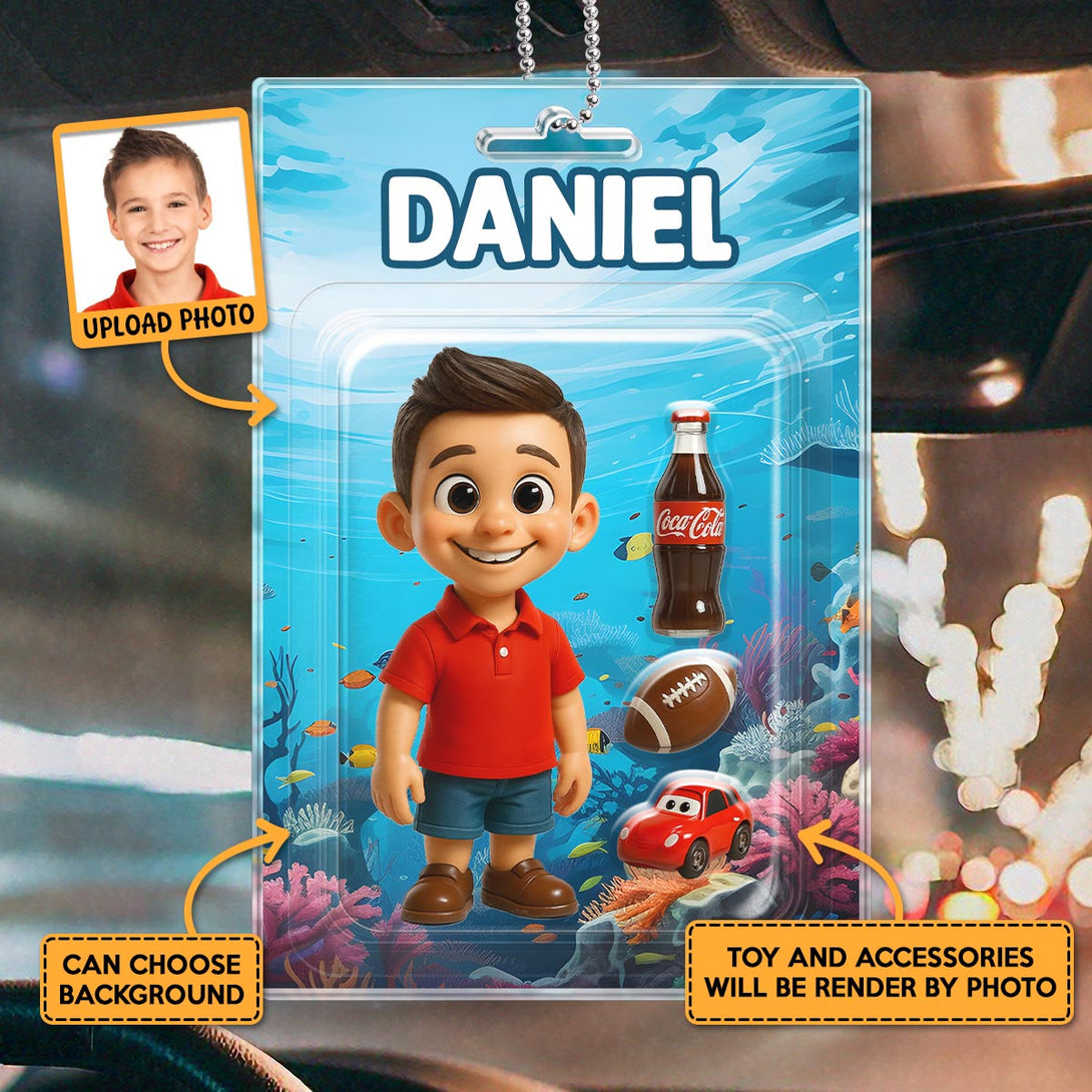 Custom Photo Child Character Toy Figure Packaging Toy Box Style - Personalized Customized Acrylic Car Ornament - Gift For Kids, Family Members and Friends